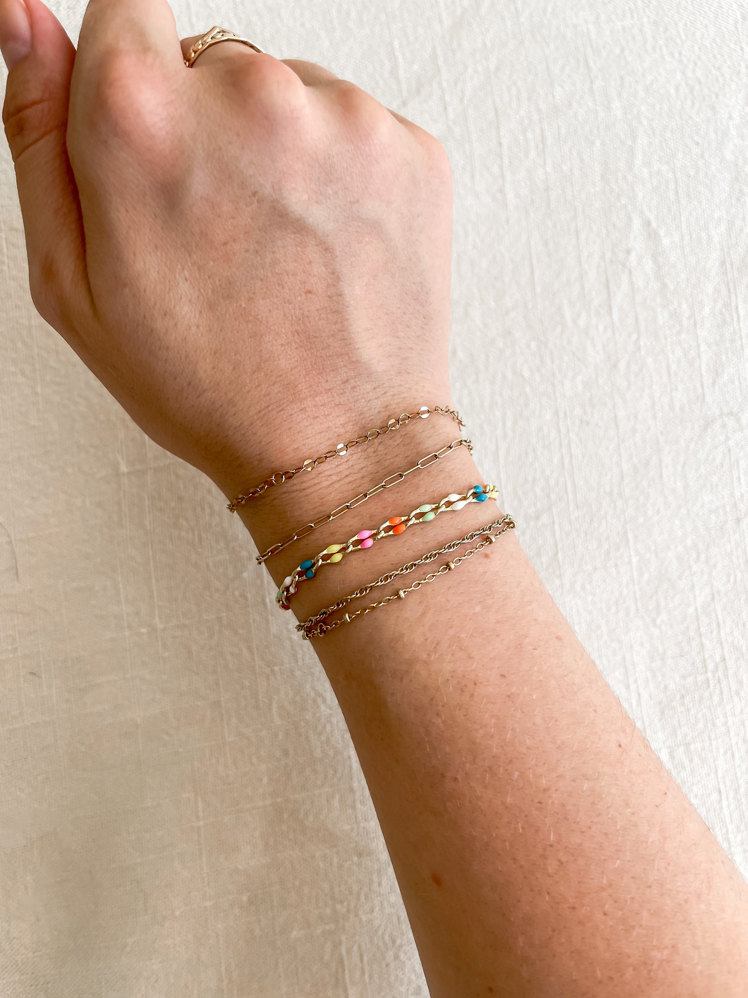 Handmade, assembled, and created 14k gold filled and sterling silver bracelets.