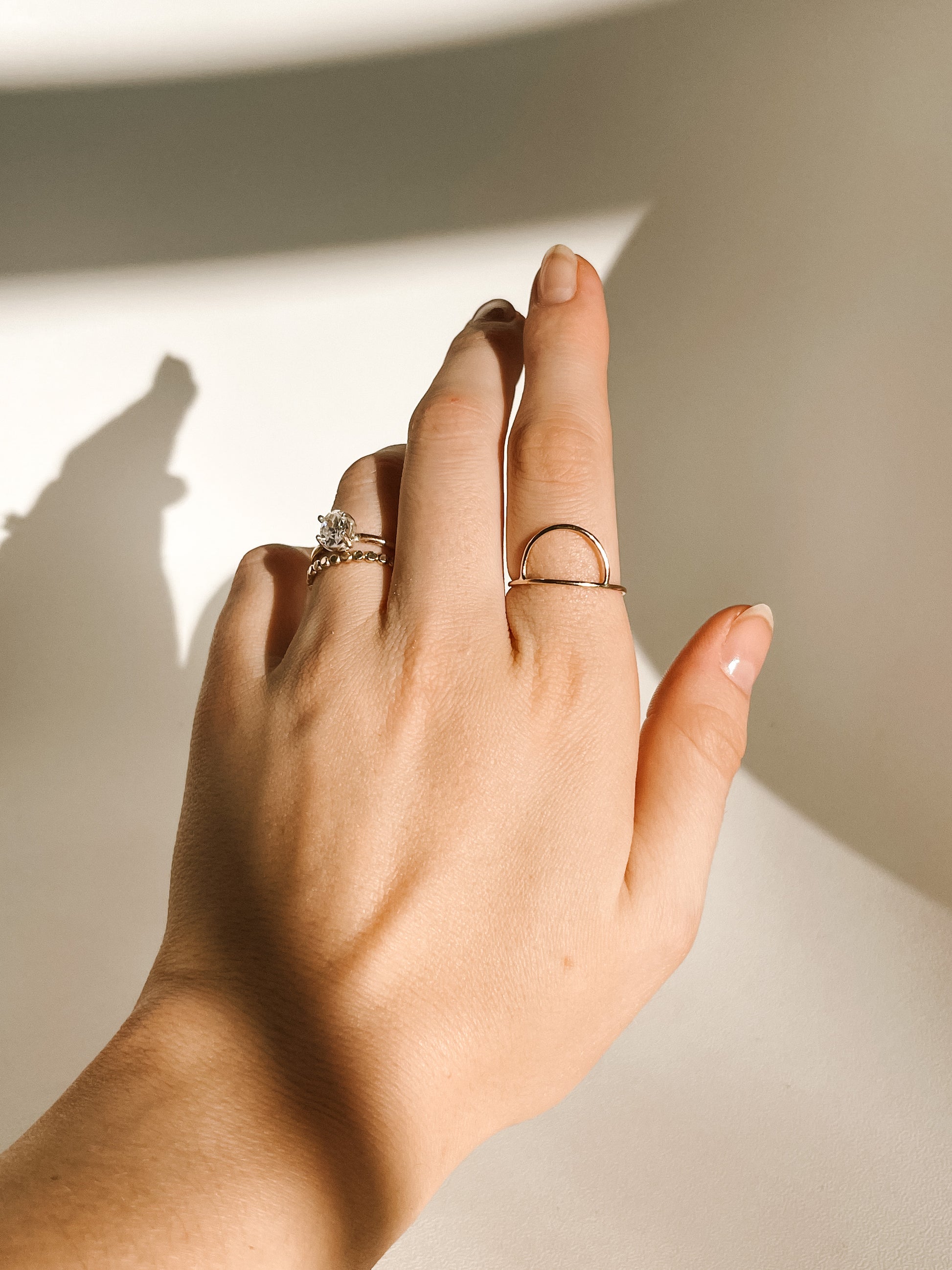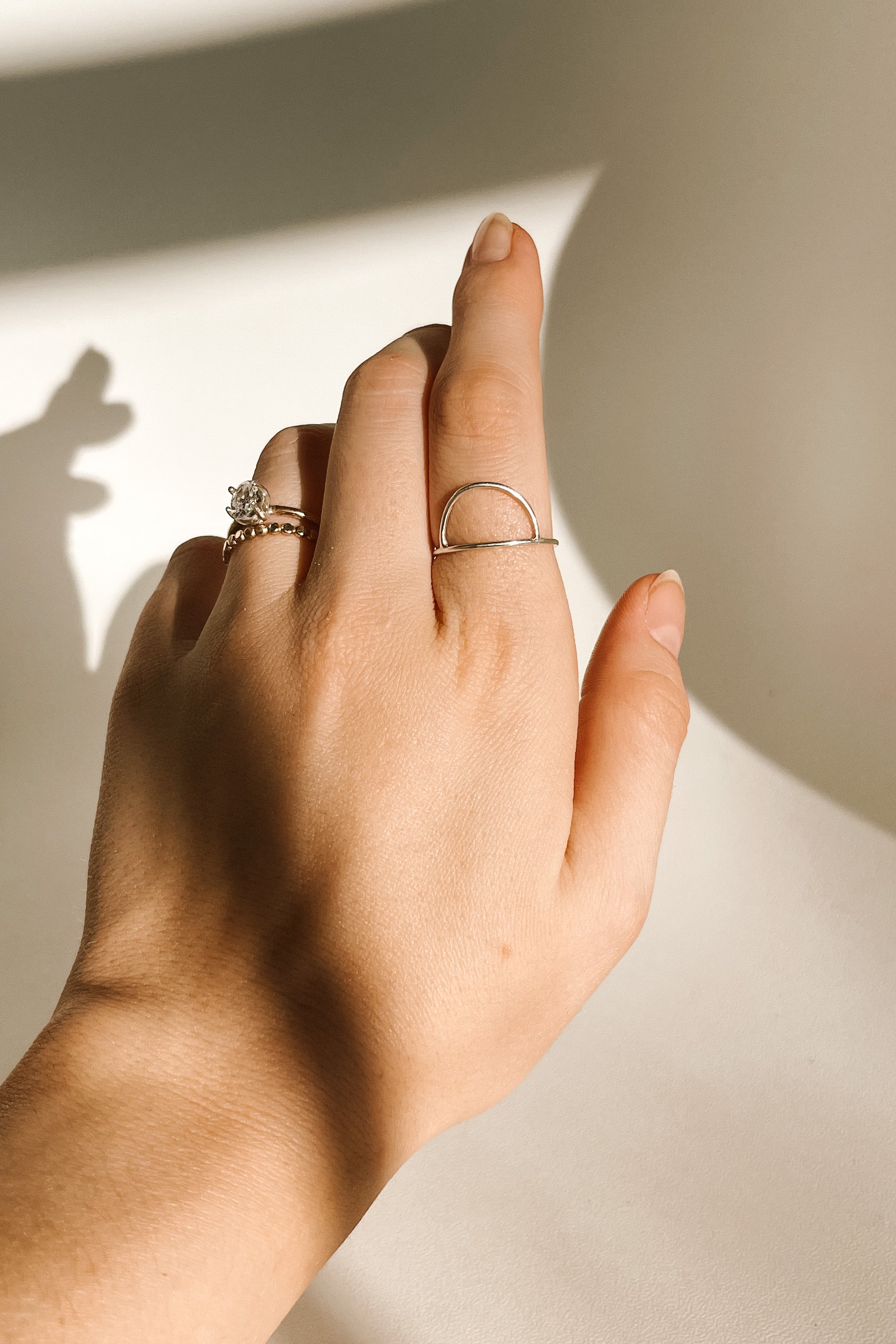 The Eliza arch ring is made from a classic round wire. It can be worn solo or add it to any stack to create a custom look.