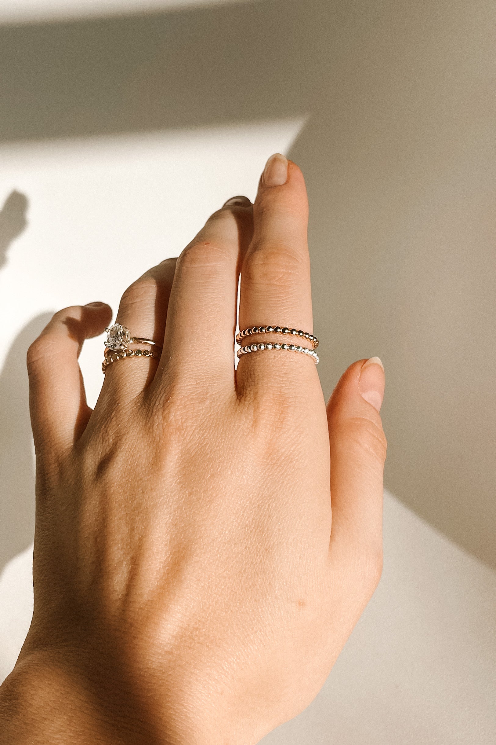 The Caprise ring is made from a beaded wire. It can be worn by itself, or add it to any ring stack to create a custom design.