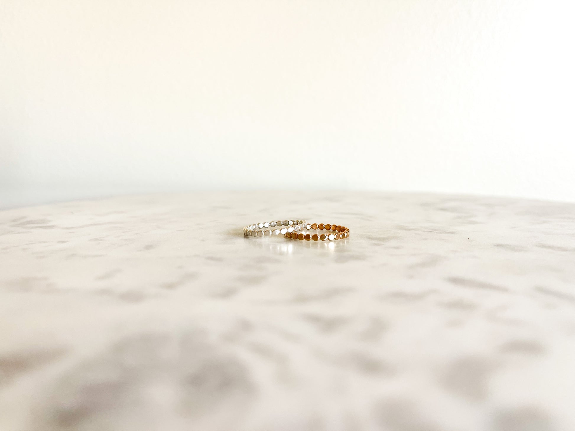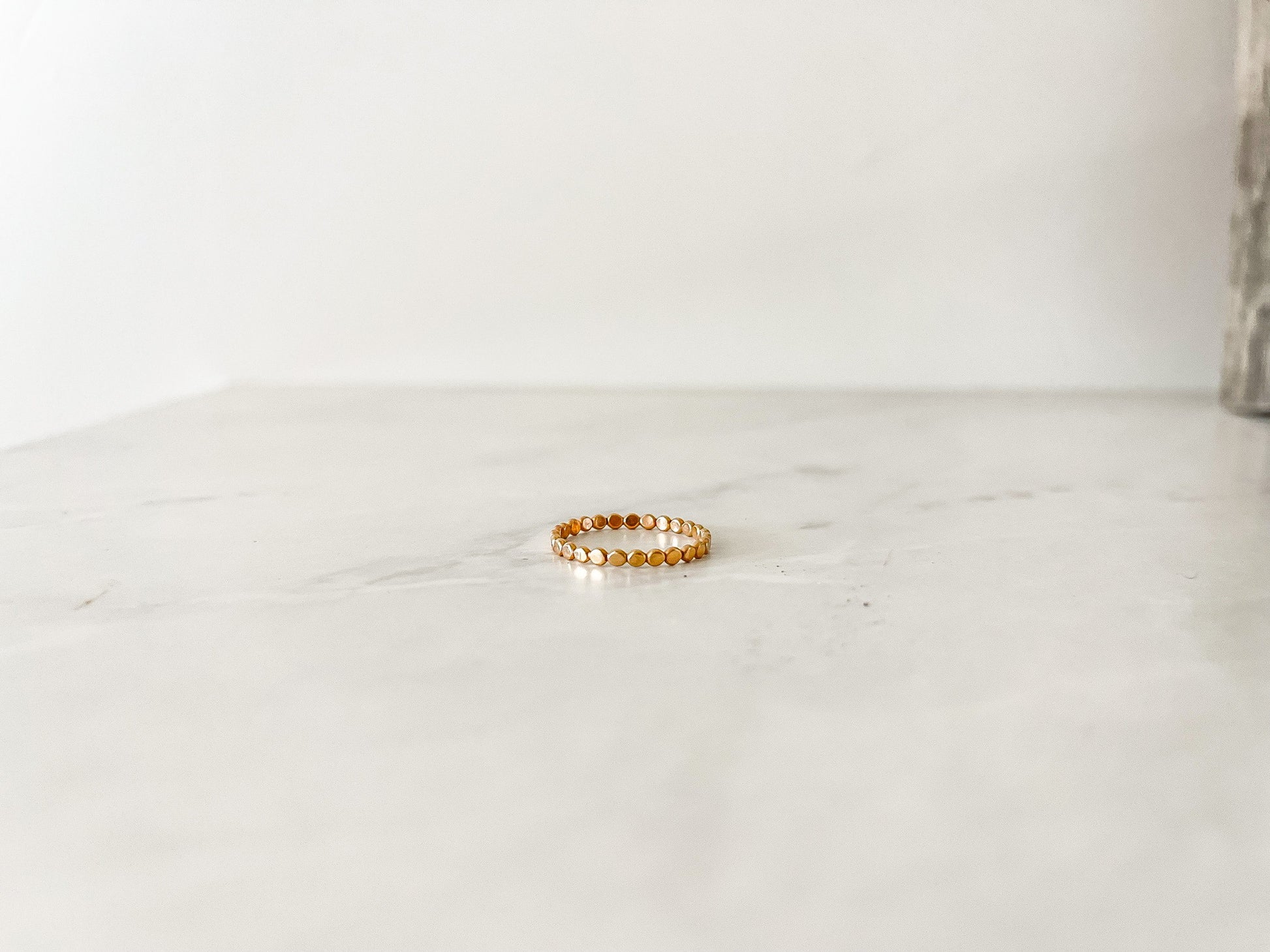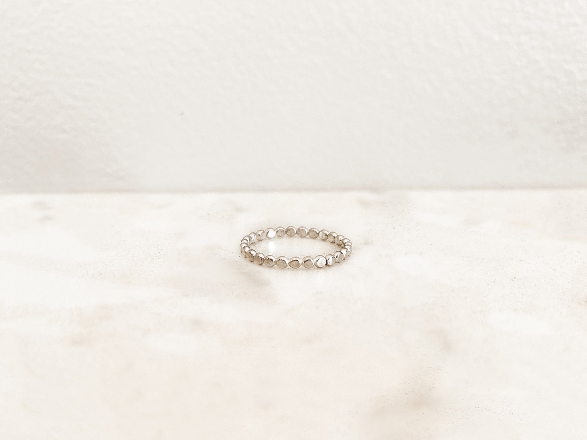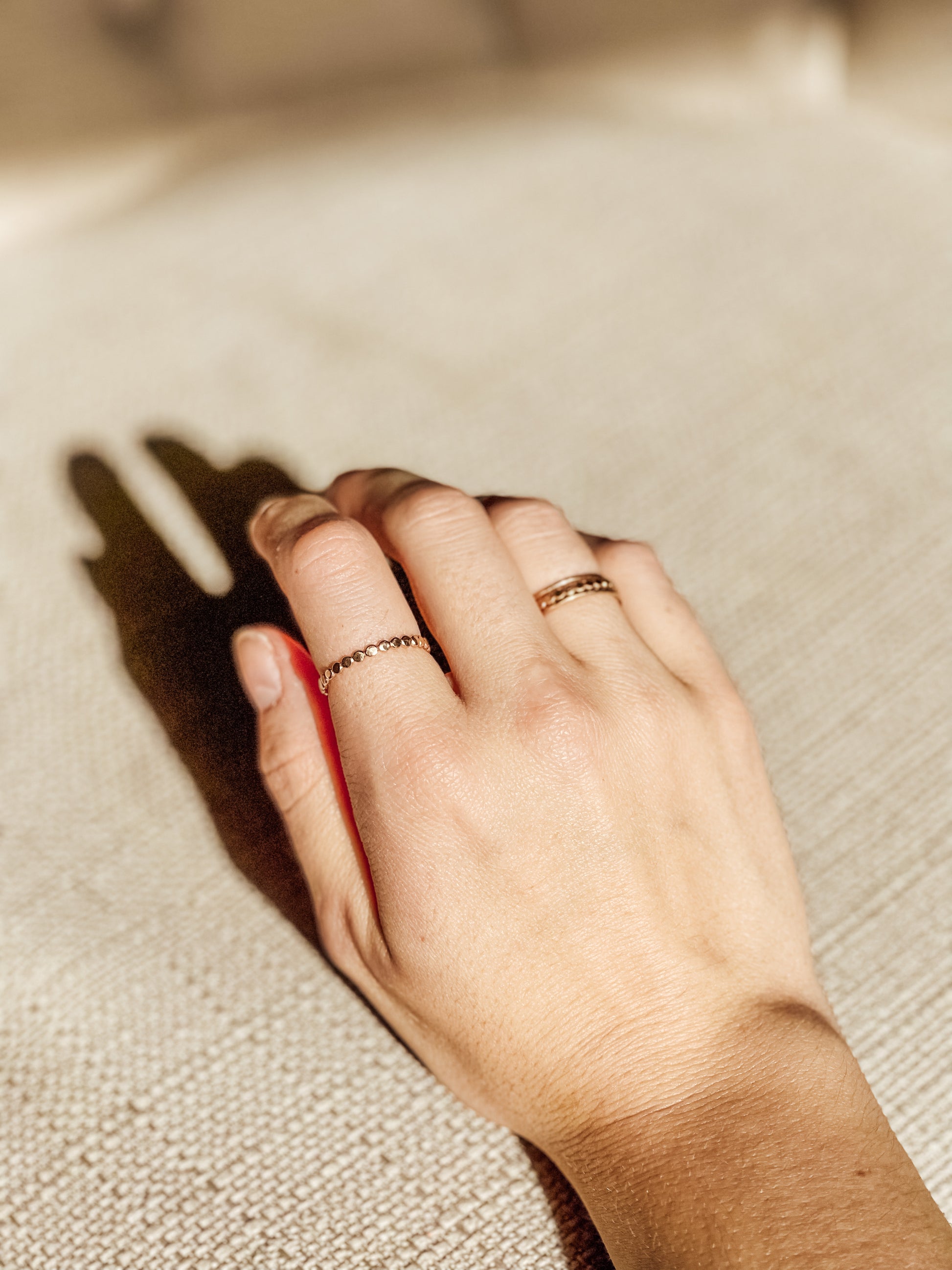 The Elle stacking ring is a hammered bead wire. It can be worn by itself or can added to any ring stack to create a custom design.