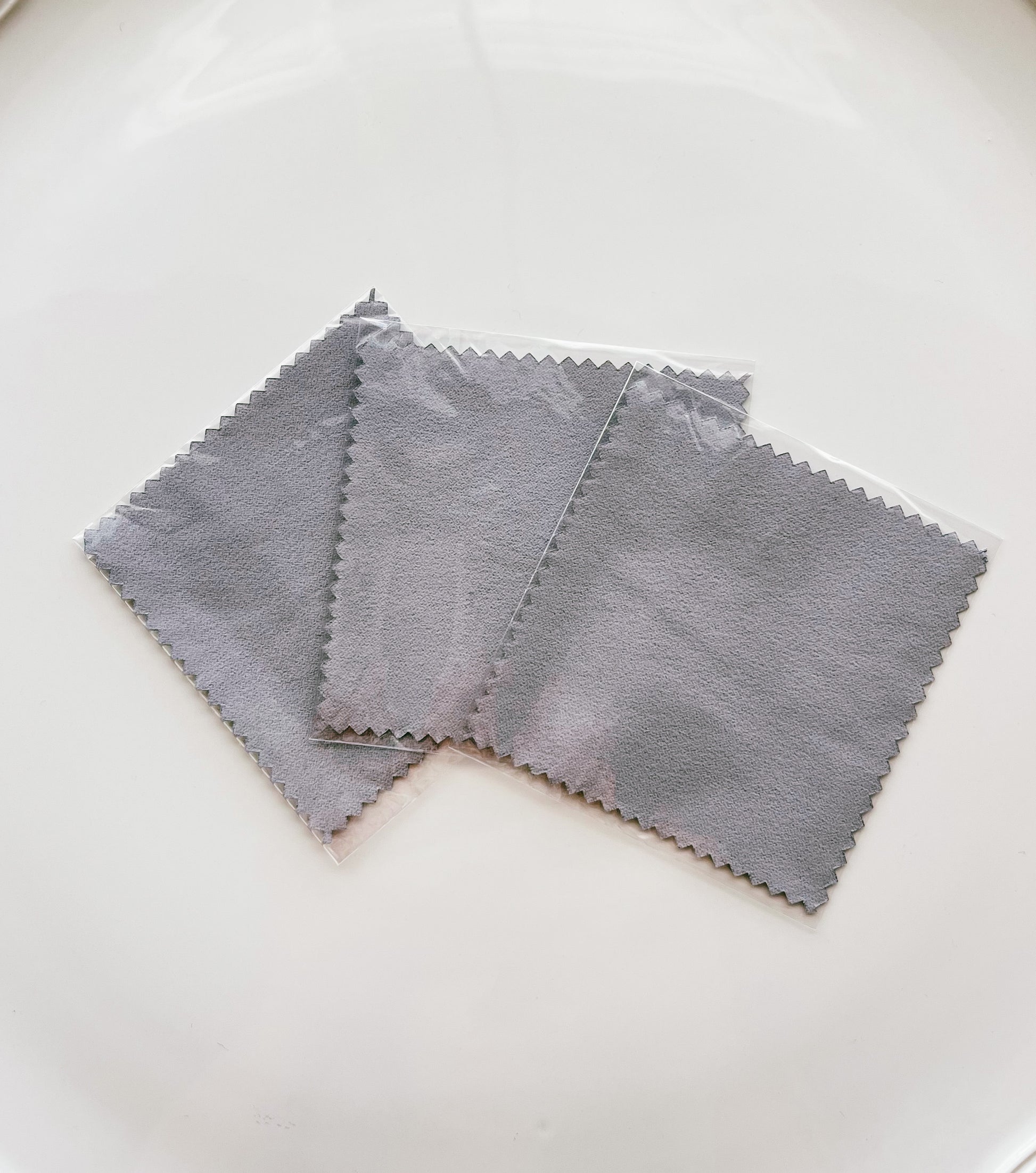 Polishing cloths safe for all metal types. Use to clear up any natural oxidation or tarnishing.